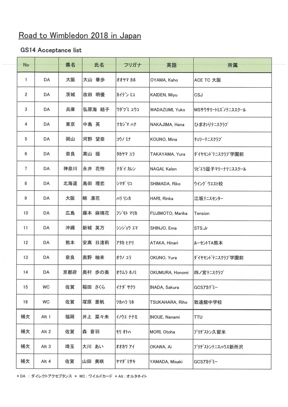 『 Road to Wimbledon 2018 in Japan 』の出場選手に対し応援のメッセージが届きました。